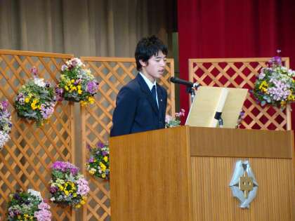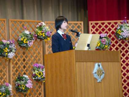6番目にA組の田畑君が「科学の進歩」、最後のA組の奥津さんが「一瞬を生きる」という題で意見発表をしました。