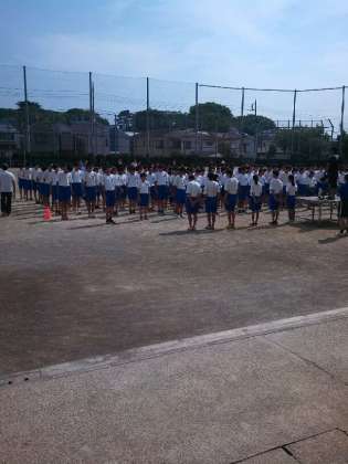 3年生が修学旅行から帰ってきて、初めての全体練習です。暑さに負けじとがんばっています。