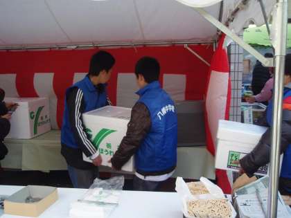 2月7日(日)、九品仏商店会の「餅つき大会」が行われ、1年生10名がボランティアとして参加しました。八幡中学校の生徒がボランティアで活動するときには、PTAが用意している青のベスト(背中に「八幡中学校」の文字)をいつも着ています。