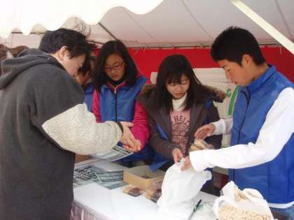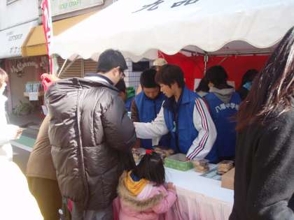 生徒たちは、商店会に買い物に来た人々に声をかけ、12時から2時間程で1268パックを完売しました。