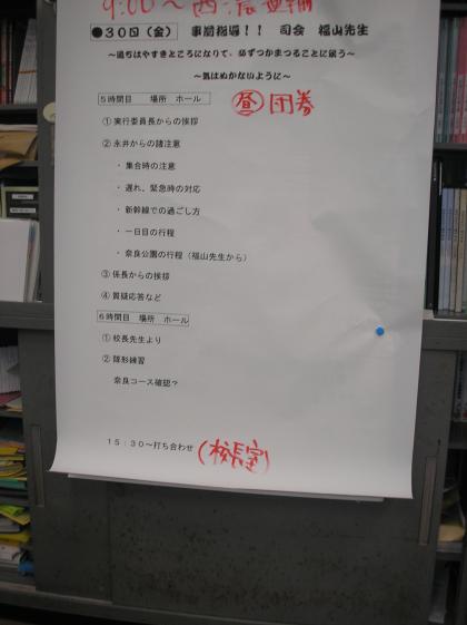 修学旅行も来週の月曜日に迫り、明日は事前指導の日です。明日の朝、3年生は大きなバッグを持って登校することになります。もう準備することはないな、と気を抜いてしまうと体調を崩したり怪我をしたりと思わぬハプニングが起きます。タイトルは「徒然草」の「高名の木登り」の言葉です。最後まで気を抜かず3日間を乗り切りましょう。