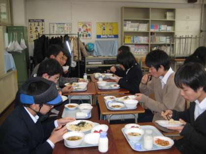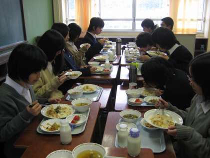中段は2年生です。食欲旺盛な2年生です。早い人はもうご飯が半分もありませんでした。成長期ですね。