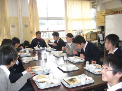 下段は3年生です。たくさんの人数で食べてます。自己紹介が終わるころにはチャイムが鳴っていました。