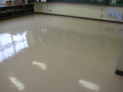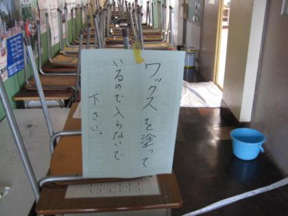 3年生が修学旅行にいっているため、主事さんが3年生の教室のワックスがけをしてくださっています。これで、教室がまたきれいになります。