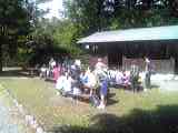 予定通り、湧水の里に到着しました。少し早い昼食を広場で、班ごとにとりました。