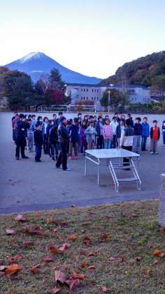 おはようございます。富士山がはっきり見えるなか、朝礼です。