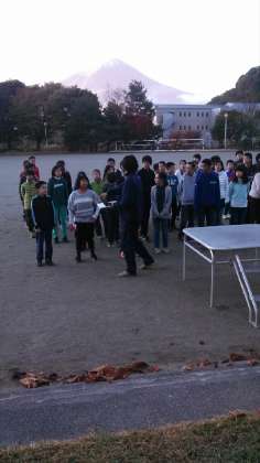 おはようございます。けさも良い天気で富士山が見えます。皆さん少し眠そうです。