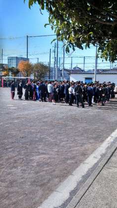 昨日の雨風でたくさんの落葉が落ちています。短い時間ですが、いつもお世話になっている地域を清掃しました。写真は校庭での集合場面です。