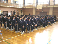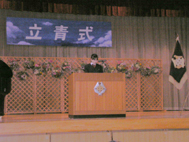 立青式とは、立春の日に14歳を迎える生徒(2年生)に対し、その前途を祝う会として青少年九品仏地区委員会との共催で行われる行事です。昭和44年に始まり、今年で38回目を迎える他校にはない本校伝統の行事です。