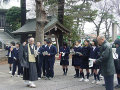 3月2日と9日、1学年の選択社会科で近くの九品仏浄真寺に出かけました。郷土学習の一環として各自で調査を行い、それをもとに実際にご住職からお話をうかがうというものです。