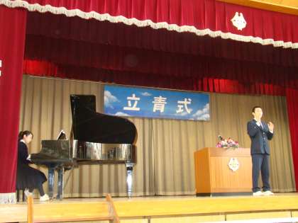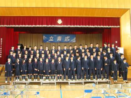 立青式は、2年生が中心となり意見文を発表し、合唱を歌う本校独自の行事です。今年度もこの日のために準備を重ね、とても素晴らしい式となりました。1年生,小学生,地域・保護者の方々も参加し、14歳のお祝いをしていただきました。これから八幡中学校を背負っていく2年生。今後の活躍が楽しみです。