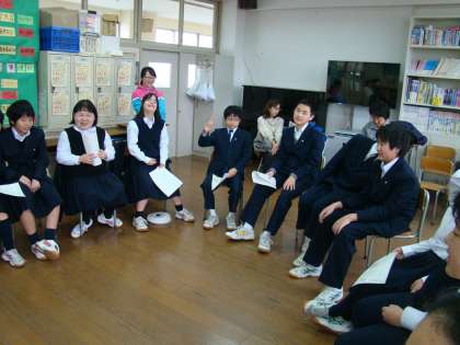 2月15日(月)来年度の新入生を招いて交流会を行いました。自己紹介、制服体験、フライングディスクの実演&体験、ゲームなどを行いました。小学生が安心して入学できるように生徒達が温かい雰囲気を作りあげていました。