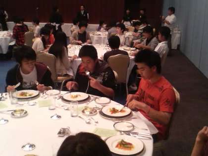 今晩は、ホテルでディナー。メインディッシュは、子牛のエスカロップパン粉焼きマデラソース。