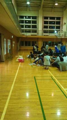 入浴後夕食をしっかり食べ、明日のオリエンテーリングの説明、室内オリンピックの練習をしています。