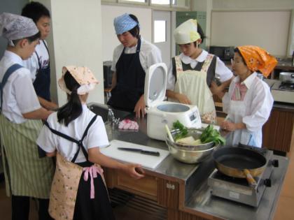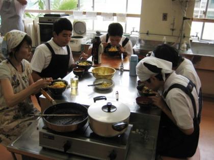7月2日、C組は調理実習がありました。今日のメニューは、「ビビンバ丼・かきたま汁」でした。生徒たちは、大根の千切りなどをはじめて体験しました。今回も地域の方々にボランティアで参加していただきました。お忙しい中、ご協力いただきありがとうございました。