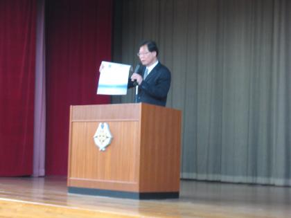 7月2日、全校朝礼がありました。校長先生から、今月のテーマ『良心』について紹介がありました。キーワードは「正直・誠実・自律」です。生徒が自分の行動を振り返り、この言葉を意識しながら自主的に考え行動できるよう指導しています。