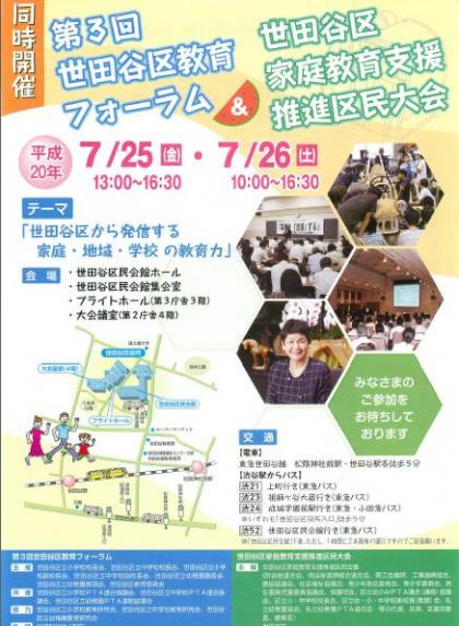 7月25日(金)の「世田谷区家庭教育推進区民大会」と26日(土)に行われる「世田谷区教育フォーラム」の案内を配布しました。