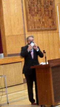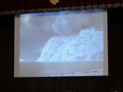 11月12日1時間目、藤原秀樹先生をお呼びして「防災講演会」を開きました。藤原先生は平成12年6月の三宅島噴火の時三宅中学校の校長先生として避難所の指揮をとられました。避難所での中学生の働きなどたくさんのことがよくわかりました。