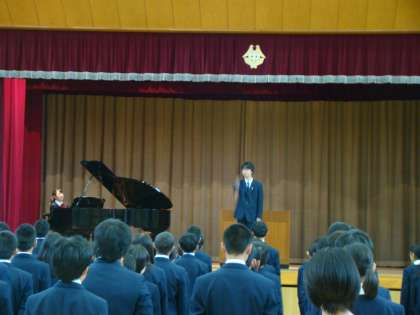 大きな事故もなく2学期を終了することができました。保護者の皆様、地域の皆様、ありがとうございました。写真は終業式で校歌を歌っているところです。