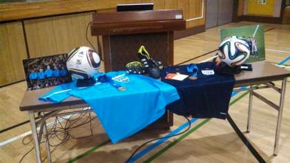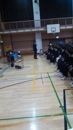道徳授業地区公開講座の一環として、3時間目にサッカーの国際審判員の西村雄一さんにお越しいただき講演会を行いました。ワールドカップで使用したボール等をお持ちいただき、生徒達は実際にボールに触れることができました。お話も感銘を受ける内容で、生徒は「審判に対しての感じ方が変わりました。お話を聞く前は審判に対して『は?』と、思うことがあったけど違うことがわかりました。」等の感想を持っていました。今後の学校生活に生かすことのできるヒントをたくさんいただいた講演会でした。