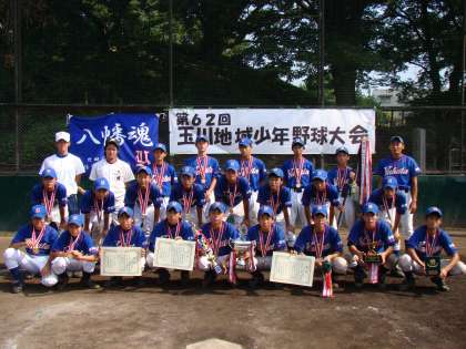 8月18日〜21日の4日間、第62回玉川地域少年野球大会が野毛町公園野球場で行われました。決勝戦はとても締まった試合で、延長線の末、勝利することができました。大変暑い中での戦いでしたが、夏休みの練習や合宿の成果を発揮することができたと思います。この優勝の勢いで、新人戦もがんばっていきます。お忙しい中、応援してくださった保護者や関係者の皆様、本当にありがとうございました。