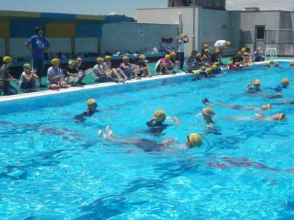 生徒は、着衣をしての水泳は服が体にまとわりついて思うように泳げないこと。また、ペットボトルを利用すると長く浮いていられることも学びました。