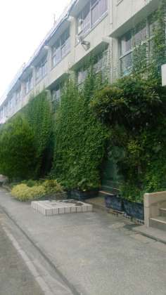 現在、緑のカーテンが校舎を覆っています。暑い夏も校舎内は涼しく、省エネにも貢献しています。