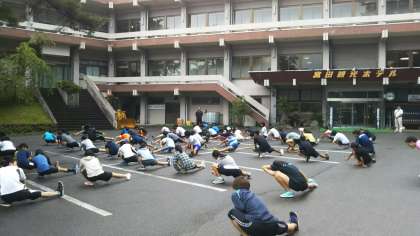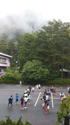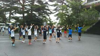 2日目の朝を迎えました。全員元気です。6時30分から、宿舎前広場で体操をしました。
