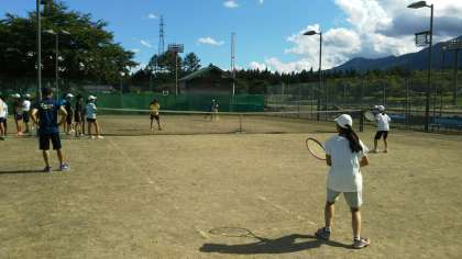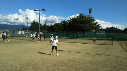 午後のテニス部練習です。ダブルスでの試合に向けた練習をしていました。