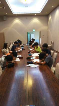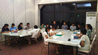 8時から、各部でミーティングを行いました。明日の予定などを確認しました。疲れがたまってきているので、10時消灯でしっかり寝ることを確認しました。