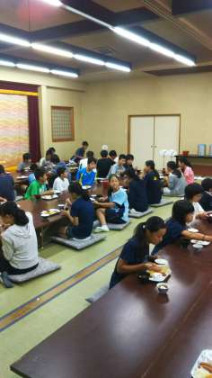 3日目の朝食です。いつも通り食事係が準備を行い、今朝は陸上部の「いただきます」で食べました。力をつけて、練習に向かいます。