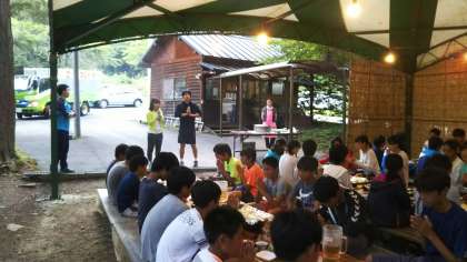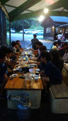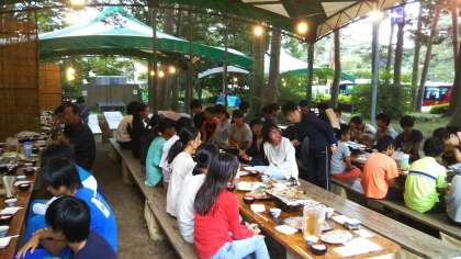 全員元気に宿舎に戻りました。6時15分から、3日目夕食恒例のバーベキューを食べました。会話が弾んで疲れも吹き飛びました。