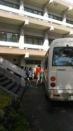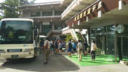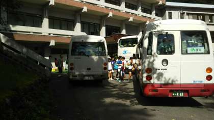 8時20分、3台のバスに分かれて、それぞれの練習場所に全員出発しました。