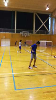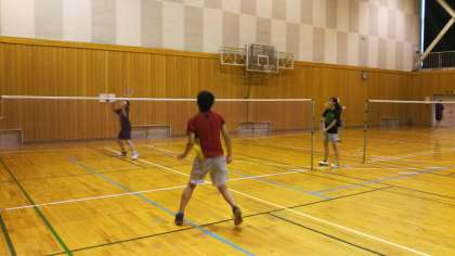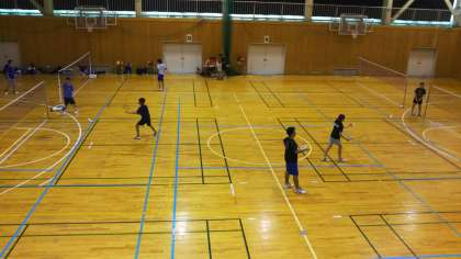 バドミントン部最後の練習です。こちらもシングルスやダブルスでの試合を、ローテーションしながら進めていました。