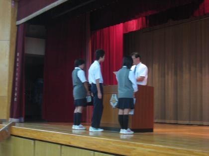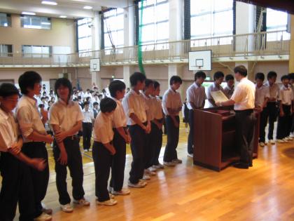 始業式後、野球部・陸上部の表彰や生徒会選挙のお知らせなどがありました。