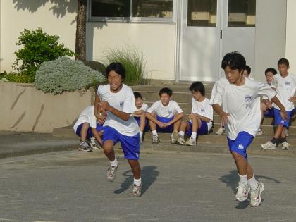 9月3日、連合陸上の練習が始まっています。参加を希望した生徒たちが先生方の指導のもと練習しています。