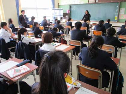 2年B組は、理科で1年生の学習内容の確認を行いました。各班の先生役の生徒が班員に説明をしました。1年A組は、数学の授業でした。次回から基礎コース発展コースで学習するための説明の後、小学校の復習プリントに取り組みました。1年B組の音楽の授業では自己紹介を兼ねて小学校時代の印象に残っている音楽の授業や、普段聞いている音楽をそれぞれ紹介しました。