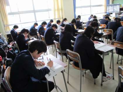 3年生は、本日「全国学力・学習状況調査」を行っています。「国語A」「国語B」「数学A」「数学B」「理科」の調査に続き、学習状況や学校生活等に関する質問用紙に回答します。一生懸命に取り組んでいます。