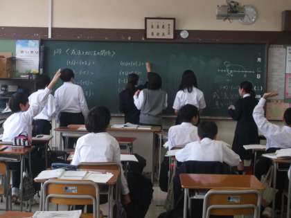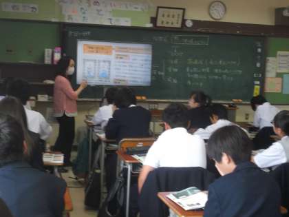本日は授業公開日となっています。1年生は数学と社会を行いました。数学では少人数による「正負の数の減法」を、社会では「世界の人々のくらし」を取り組みました。