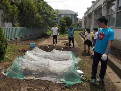 C組は、「畑作業」でオクラと枝豆の苗を植えました。また「ティーボール」で楽しく汗を流しました。