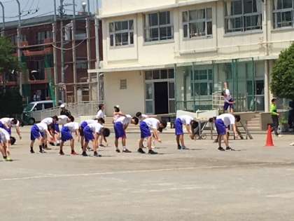 暑い中でしたが、2学年では3.4校時に運動会練習をしました。ラジオ体操で、しっかり準備運動をした後学年種目の練習をしました。