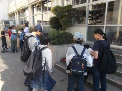 2年生は、学校に集合して班ごとにチェックを受けて出発しました。