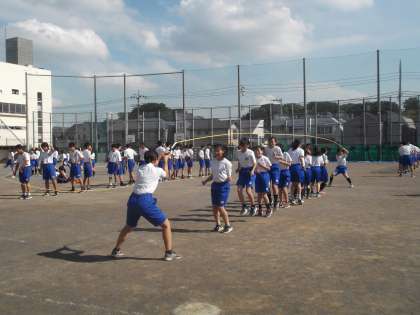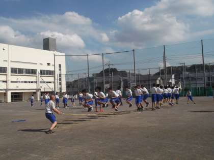 校庭では大縄跳びも練習が行われ、努力を重ねた成果が表れてきました。回し手と跳ぶ生徒が大きな声を出して熱心に取り組んでいます。