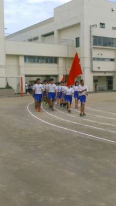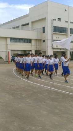 運動会本番が近づいてきました。5月28日6校時、運動会全体練習を行いました。3年生を先頭に、入場行進も堂々としています。