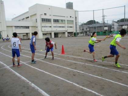 代表リレーの練習を行いました。各学年男女1名ずつのチームを2チーム編成して行います。運動会の花形種目です。本番はどこが勝つのか? 目が離せません。