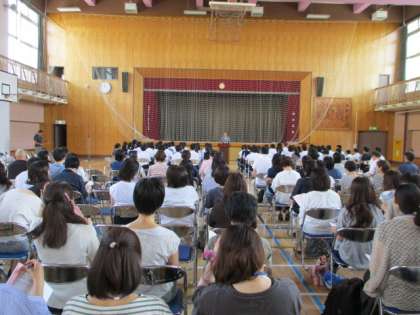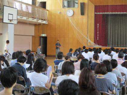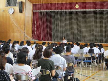 6月9日3校時、第1回進路説明会を行いました。3年生の生徒はこれから進路決定に向けての様々な取り組みが始まります。3年生は真剣に話に耳を傾けていました。