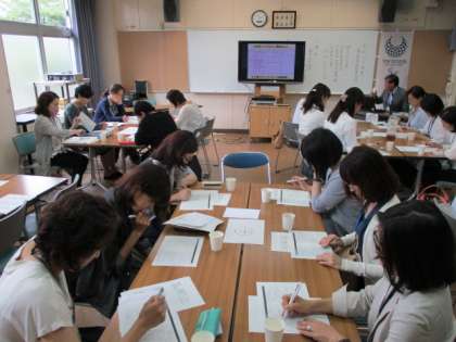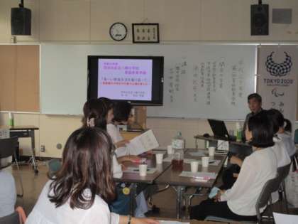 「思春期の中学生の行動や心理を考える」をテーマに校長先生からの講演がありました。講演の後には、グループに分かれての意見交換も行われ、身近なテーマだけに活発な話し合いがもたれました。
