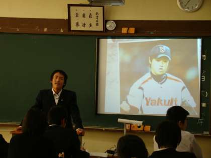 1年の英語の授業で、人物紹介のスピーチ発表を行いました。自分が選んだ人物を紹介するため、英語で文章を作り、英語で紹介します。準備に時間をかけ当日を迎えました。よい発表ができたと思います。