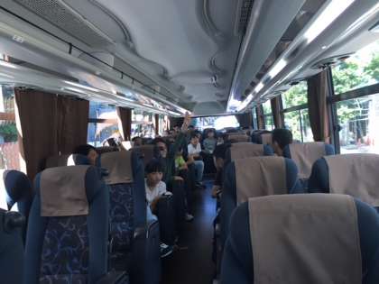 パスの中で、レク係が進行してパスレクで盛り上がっています。