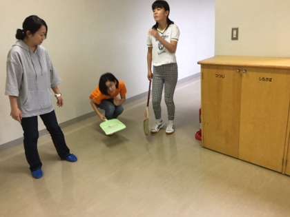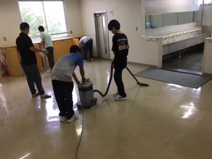 8時から掃除の時間です。来た時よりも美しくの気持ちで、協力して清掃に取り組みました。